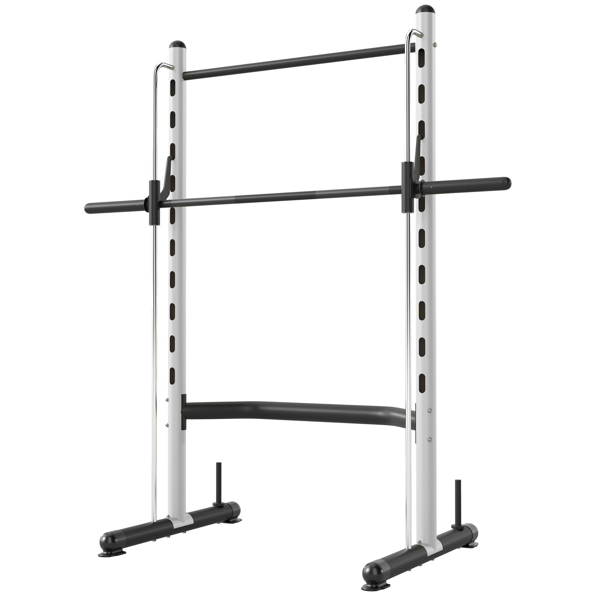 Make the most of your exercise routine with the Soozier half-rack workout station. Great for multiple types of exercises, the rack can be adjusted to suit your height and can handle squats, bench presses, pull-ups, and more. The barbell rack's steel frame is solid and stable, with rubber feet to keep the stand from sliding. Great for keeping active and building muscle, you'll be able to target multiple muscle groups and achieve your fitness goals from the comfort of your home.