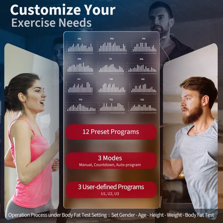 -Adjust the intensity of your workout with 12 preset programs, 3 modes and 3 user-defined programs