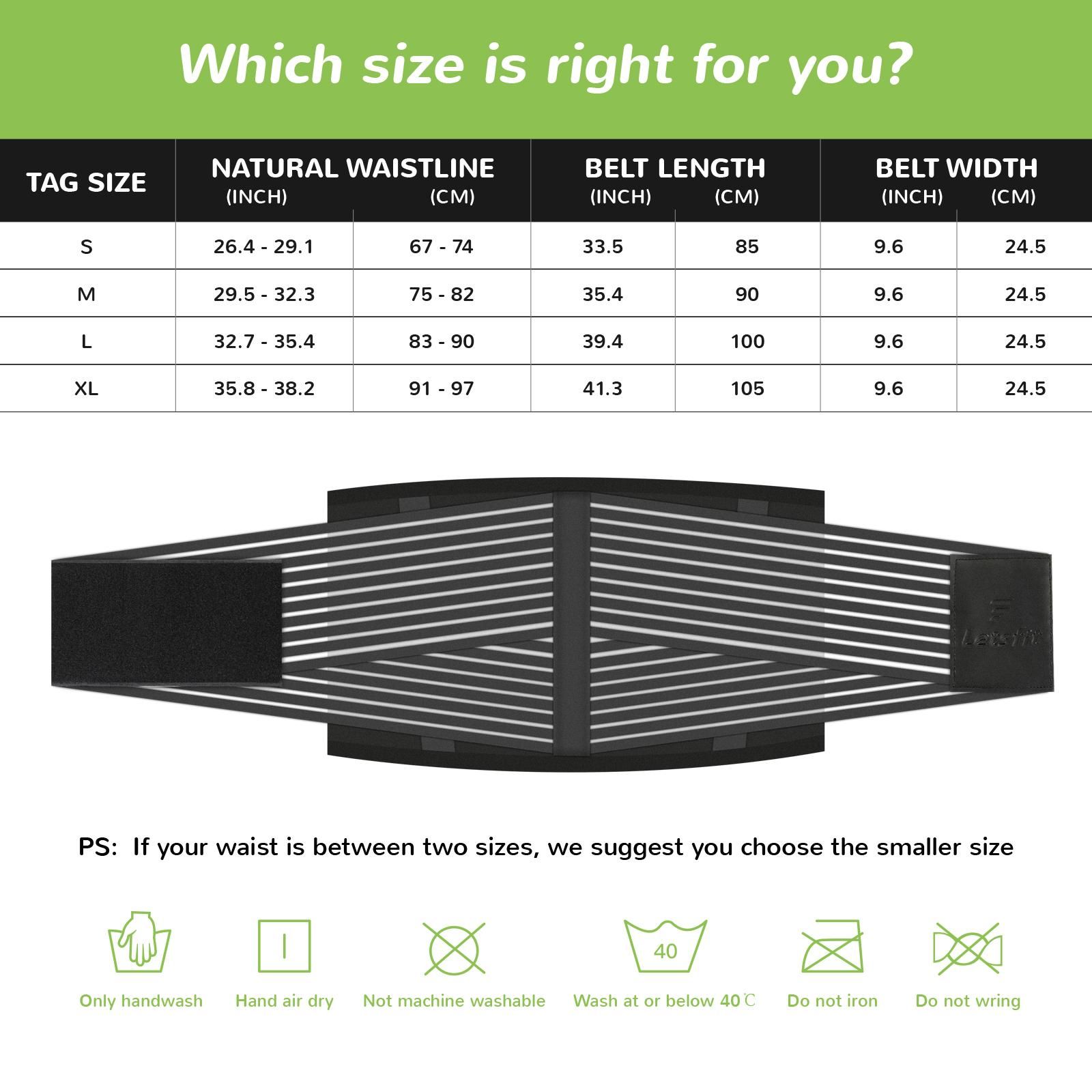 About our women's waist trainer: designed to make you sweat crazy and enhance your exercise to achieve your desired goals. 1. Packing quantity: 1 sweat-absorbent belt training belt. 2. If you are sensitive to neoprene; please wear it on a shirt. 2. Hand wash. Please check the size chart on the left and use our size chart instead of Amazon size.