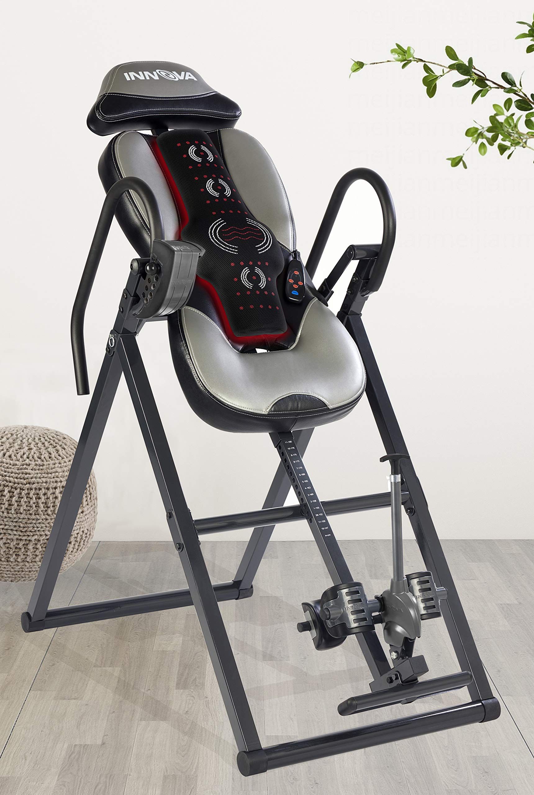 The Innova ITM5900 is a heavy duty inversion table that comes with many new features that set it apart from other inversion tables. Starting with it's vertical massage pad that covers the entire spine area and its contour integrated lumbar pad to provide a close up heat and massage therapy for the lower back/waist area and provides isolated Heat and Vibration with multi-mode massage settings for a complete massage experience.