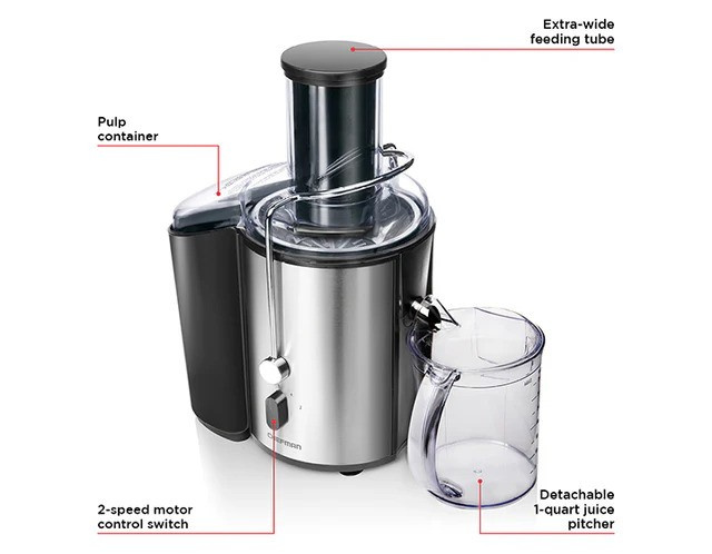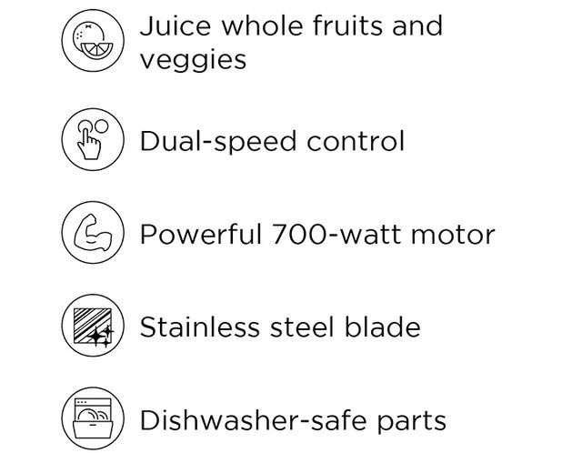 Kick-start and maintain a healthy lifestyle with the Art+Cook 750W Juice Extractor. Fresh juice can fulfill the recommended daily value of Vitamin A and D, calcium, potassium, protein and fiber. This whole fruit juice extractor is able to do that without the need for sugar, preservatives or additives. Easy to clean with dish washer safe parts. Use the different modes to adjust for the type of ingredients you are using. Get ultimate power with the 750W motor and stainless-steel blade to create delicious recipes.Product OverviewDimensions: 14″ H x 13″ W x 9″ DWeight: 4.5 lb.DetailsProduct Type: Slow Masticating & Cold Press JuicerPower Type: ElectricColor/Finish: SilverJuicer Capabilities:CitrusBerriesRoot VegetablesLeafy VegetablesPomegranatesWheatgrassPitted FruitsGrapesBananasJuicer Features:Continuous Pulp EjectionRemovable Pulp BinFood PusherDishwasher Safe Parts: NoneWattage: 750 WattsFood Prep Requirement: HalvedWarrantyCommercial Warranty: YesProduct Warranty: YesWarranty Length: 1 YearFull or Limited Warranty: Limited